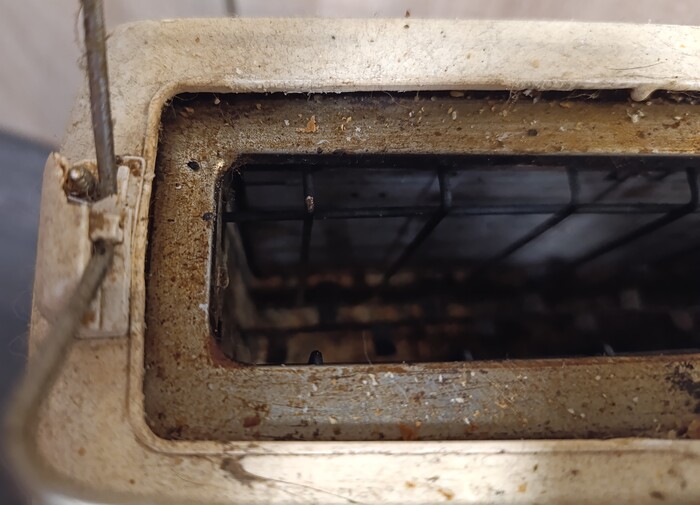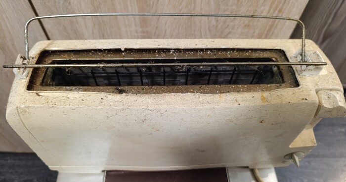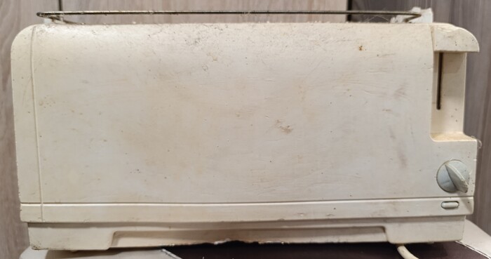 В последнее время он стоял в вагончике у строителей, они уехали, объект сдан, тостер снова у меня. Теперь отмою его и буду пользовался им дома, как в старые добрые времена. К слову, кроме того, что он нечищен, внешне в нём ничего не изменилось, так как пользовал его я постоянно и нещадно.