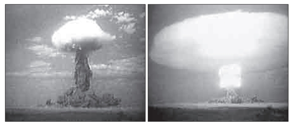 Некоторые самолеты, нанося удар по наземным целям через 21-22 мин после атомного взрыва, пересекали ножку «атомного гриба» - ствол радиоактивного облака. Дозиметрический контроль летчиков и техники после посадки показал крайне незначительный уровень их заражения. Так, на фюзеляже он составил 0,2-0,3 Р/ч, внутри кабины - 0,02-0,03 Р/ч.