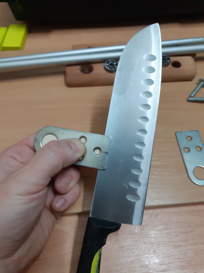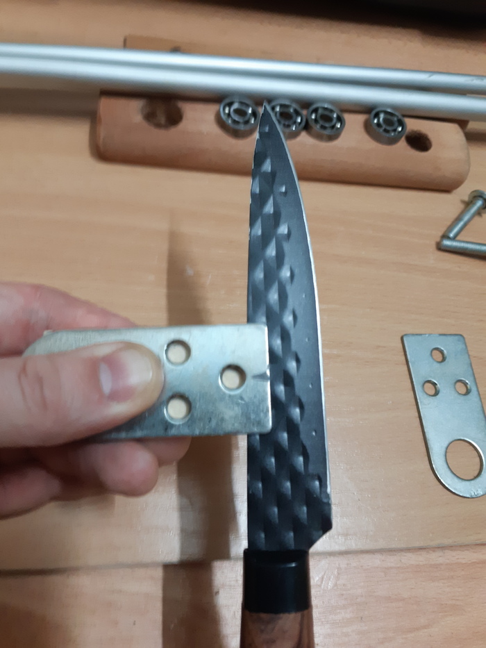 Механическая точилка имеет простую, но в то же время практичную конструкцию. Деревянный остов магнитного держателя ножа имеет форм-фактор прямоугольного форм-фактора. Но две боковые грани с магнитными накладками наклонены под углом 15° (для филигранной остроты) и 20° (для надежной остроты) соответственно. Нижняя грань остова имеет четыре силиконовые накладки, которые препятствуют скольжению остова (вместе с ножом) по столу. Точилка не содержит вредных химических веществ и соответствует стандартам качества и безопасности Европейского союза, CIQ, SGS.