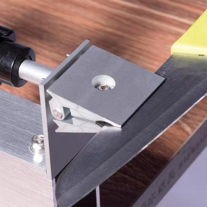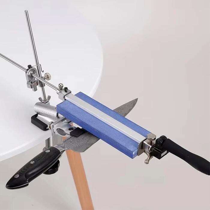 Заточной станок компании RUIXIN PRO изготовлен на базе модели Edge Pro и предназначен для заточки различных типов ножей. Он имеет гибкую систему регулировки углов заточки и позволяет произвести полноразмерную заточку и полировку режущей кромки ножа. В поставляемом наборе имеются четыре точильных бруска с зернистостью 120#, 320#, 600# и 1500#; и четыре алмазных бруска с зернистостью 240#, 400#, 600# и 1000#. Имеется также два натуральный полировальных камня с зернистостью 3000# и 5000#. Сама заточная система с поворотным механизмом изготовлена из алюминиевого сплава и имеет надёжный зажим для ножа со сменным углом затачивания. Содержимое набора размещено в удобном для переноски и транспортировки пластиковом кейсе. Товар соответствует стандартам качества и безопасности Европейского союза, CIQ, EEC, LFGB, SGS.