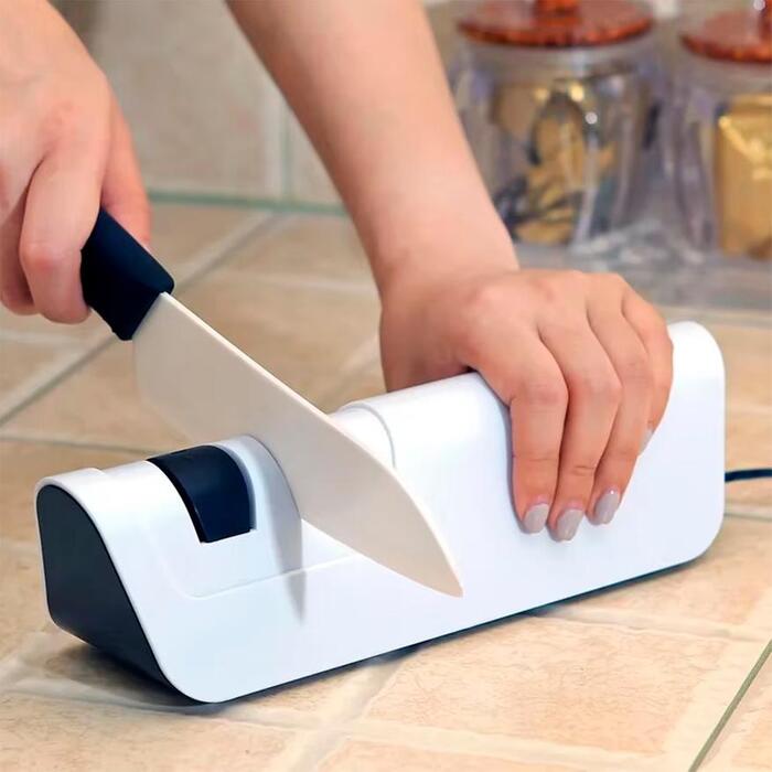 С помощью электрической точилки для ножей RISAM можно привести в надлежащее рабочее состояние как металлические, так и керамические ножи. Предназначена она для грубой и тонкой заточки кухонных ножей.