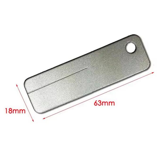 Это очень конструктивно простая точилка представляет собой небольшую металлическую пластину с канавкой на поверхности. Её форм-фактор имеет вид прямоугольника со скругленными углами, размеры которого 63х18х10mm. Вес мини-точилки — 27 грамм. Изготовлена она из вольфрамовой стали и поверхность её имеет керамическое покрытие из карбида кремния. Точилку можно использовать не только для заточки ножей, но и с помощью её можно подточить ножницы или рыболовный крючок. Её легко можно повесить на брелок, что будет очень удобно при переноске.