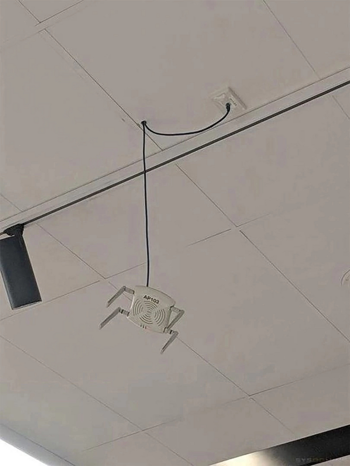 В общем имеем частный дом в два этажа. По 100м² этаж. Перекрытие между этажами ж/б монолит. На втором этаже есть слаботочный щит, туда заведена оптика, и там же будет встроен роутер. Но раздавать вайфай он не будет, его будут раздавать 2 точки доступа на потолке. В центре второго этажа 1 точка доступа, и в центре первого этажа вторая. Прокинул до них только utp кабель, то есть они должны питаться по PoE