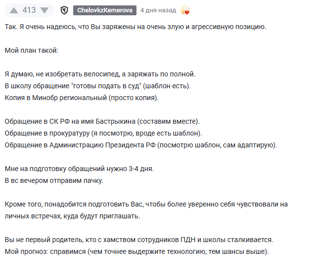 Мы за эти выходные совместно с родителями готовим обращения, как и планировали, на момент публикации этого поста они уже отправлены.
