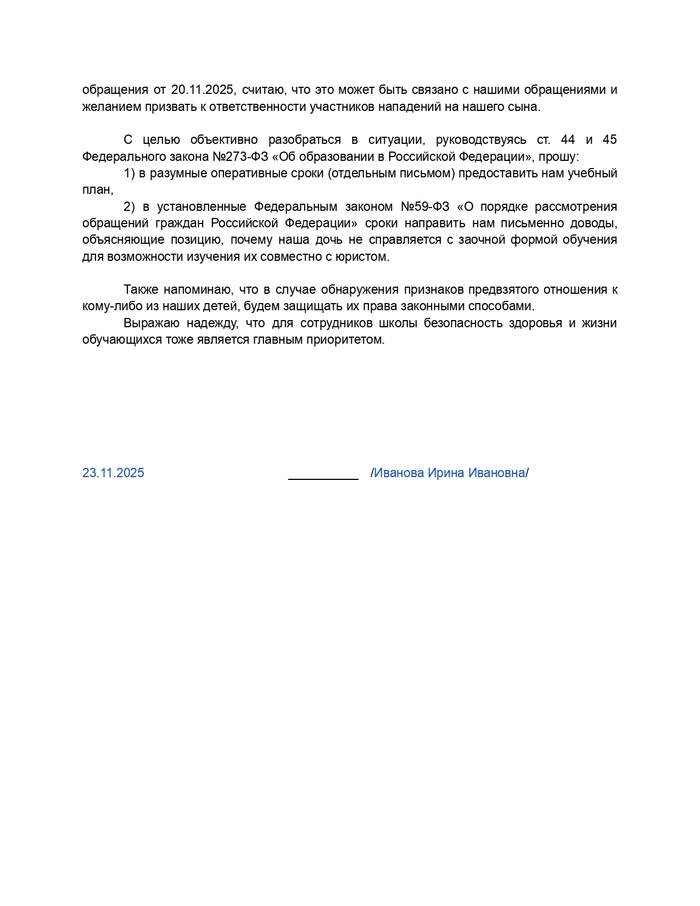 Второе – родители самостоятельно адаптировали присланный шаблон и уже в четверг отнесли в школу урезанную версию обращения.