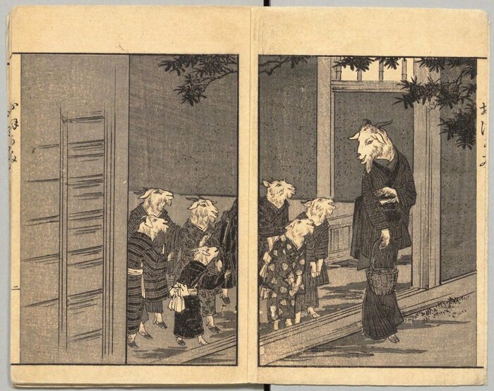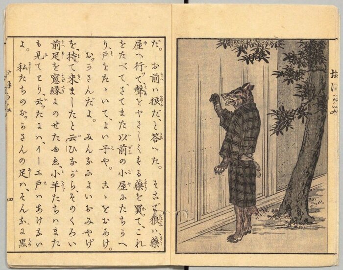 Посмотрим "добрую" и нравоучительную сказку братьев Гримм для японской аудитории. Книжица 1889 года.