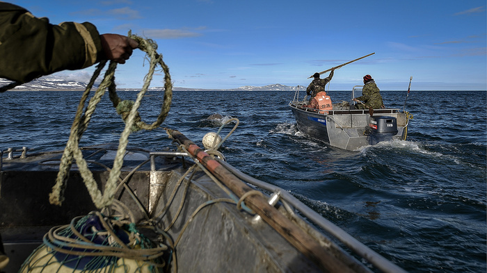 «Я должен был уметь всё в этом возрасте — разжигать примус, таскать воду, приносить дрова, правильно держать крючок, помогать собирать фал (снасть для подъёма и спуска парусов — прим. DV) — это первые обязательные навыки ученика. Главные принципы — смотри, учись и запоминай. Тем более тогда были очень хорошие наставники-старики, они вкладывали душу в ученика, чтобы он остался на промысле. Был, например, такой старик Тынель (у многих старых чукчей не было русских имен — прим. DV), который держал всех в кулаке, даже тех, кто был младше его на шесть-семь лет. Мне было очень интересно ходить за стариками, наблюдать, как они по часам, по компасу и по солнцу определяли в тумане, где ты находишься, когда придёшь на место. Сейчас цивилизация — мобильные телефоны, гаджеты, GPS-навигаторы. А раньше было интересно наблюдать за их работой, сформировавшейся за много веков», — вспоминает охотник.