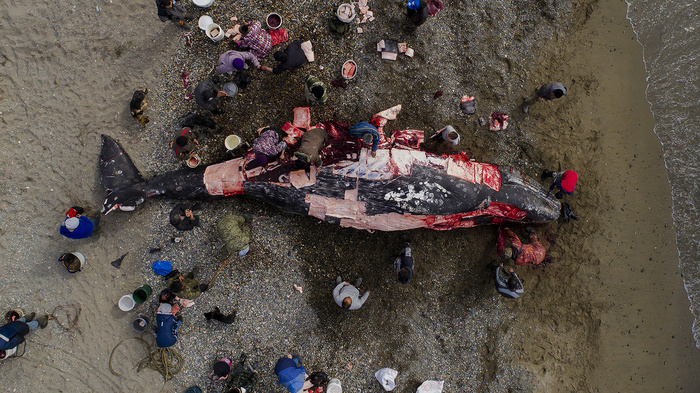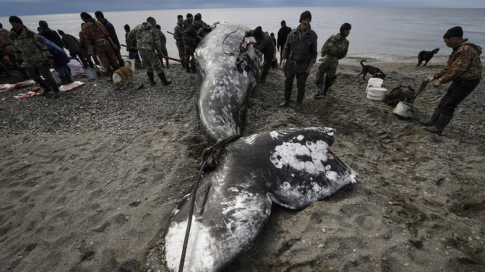 «Мы научились готовить из кита всё — котлеты, колбасы, коптить кожу. Это безотходное производство, принятое испокон веков. Если не будет морзверобойного промысла, село станет похоже на те, которые забыли традиции и промысел, забыли, что такое море. Море кормит нас рыбой, мясом, морепродуктами. Любой житель села может прийти после охоты на берег и взять бесплатно столько мяса, сколько ему нужно», — рассказывает Пины.