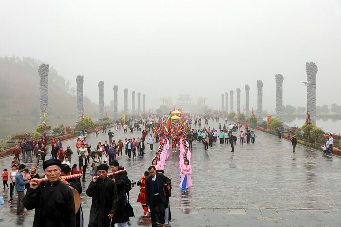 Алтарь «Святая Мать Тай Тхиен» находится в пагоде Хоа Лонг, Вьет Три. Генеалогия Хунг Выонга, хранящаяся в архивах города Фу Тхо, рассказывает, что во время правления Хунг Чиеу Выонга (седьмого короля Хунг), король Хунг отправился на гору Там Дао. Король установил алтарь, совершил церемонию поклонения и помолился, чтобы боги спустились, чтобы иметь возможность встретиться и исполнить желания... Когда он вернулся к подножию горы, встретил прекрасную, элегантную и благородную красавицу, зная, что Небо послало фею к нему. Король забрал её с собой в цитадель Фонг До и сделал принцессу фей самой праведной принцессой…