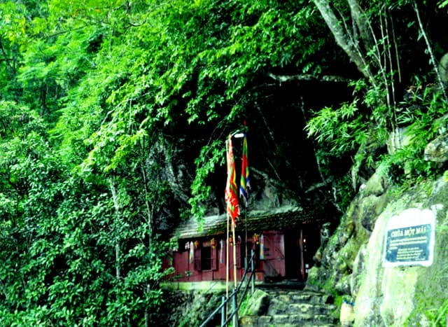 На вершине горы в постоянной туманной дымке находится храм, посвящённый местным божествам Тай Тхиен. Храм обращён в сторону юго-запада. Фасад сделан в так называемом четырех колонном стиле. В декоре – лепные изображения драконов и тигров.