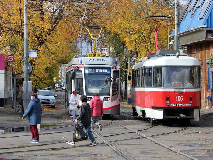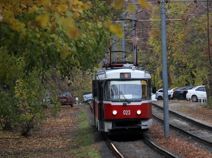 [моё] Мобильная фотография Краснодар Трамвай Трамвайные пути Электротранспорт Tatra T3 Уквз Роскосмос Осень Длиннопост