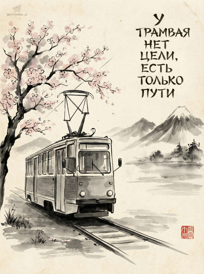 Контент нейросетей Юмор Игра слов Трамвай Трамвайные пути Картинка с текстом Нейромузыка Кот Видео Видео ВК YouTube Ответ на пост Длиннопост