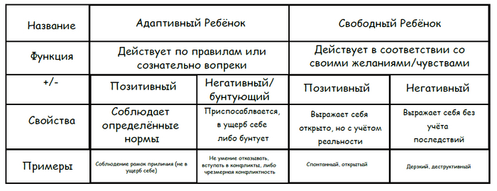 «адаптивный» ребёнок — испытывает страх и подавленность, стремится угодить, боится быть отвергнутым;