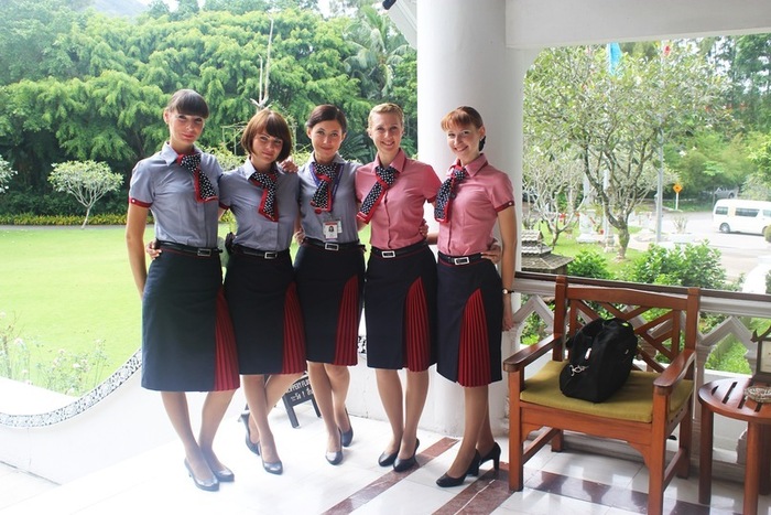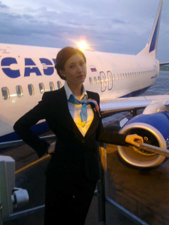 Сейчас о её работе напоминают сотни фотографий из всех мест, куда летала авиакомпания "Трансаэро," и тёмно-синий форменный плащ стюардессы - в чемодане с раритетами. Да, форма у девчонок была красивая!..