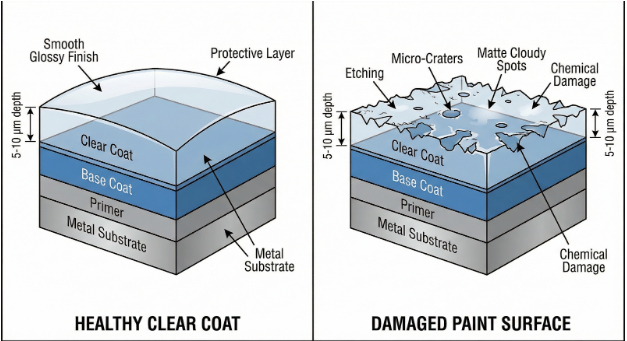 Неправильная мойка запускает каскадный процесс разрушения лакокрасочного покрытия: