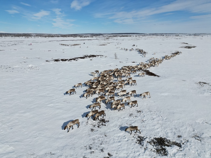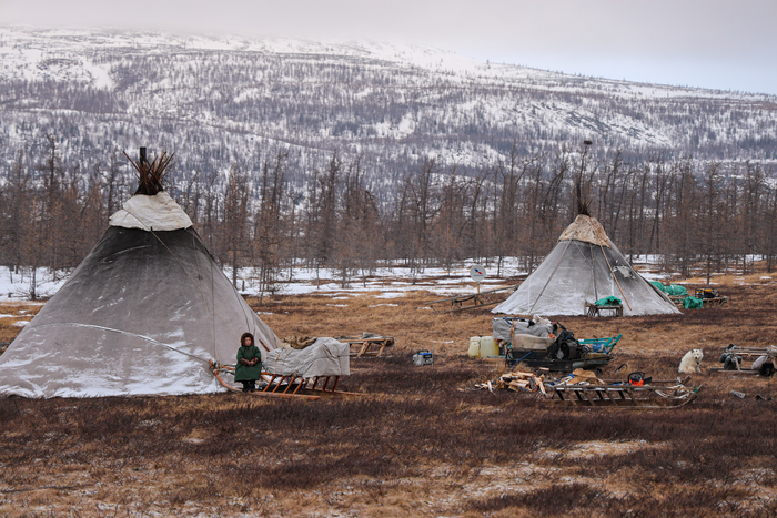 И больше всего кочевого населения в России. Эти люди всё ещё живут в чумах из шкур и спят на земле. Но уже иногда запускают дрон, чтобы следить за своим стадом с воздуха. Всё ещё пьют оленью кровь, но уже возят с собой по тундре спутниковую тарелку.