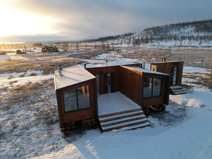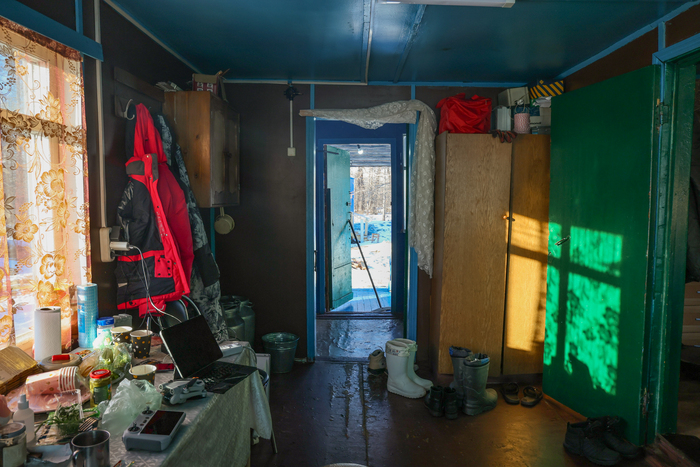 Мы проснулись где-то в тундре — в маленьком домике, где инспекторы заповедника живут вахтой. Ночью был «лёгкий морозец» — ну то есть минус 25. Такая вот на Полярном Урале весна.