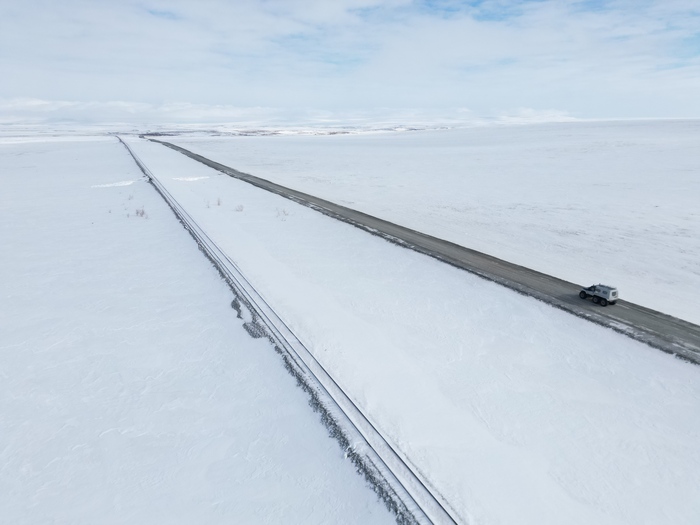 Ехал-ехал и заглох посреди ничего. Спустя 2 километра мы с водителем и лохматой оленегонной лайкой заметили пропажу попутчиков. Обернулись — сзади арктическая пустыня и ни-ко-го. Оленевод не сказал ни слова. Просто молча развернулся и нашёл ребят. Починили, поехали дальше. Обычное дело в тундре.