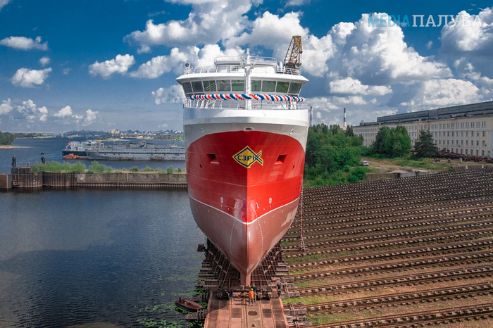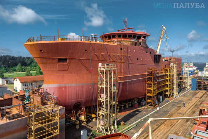 «Братья Лаптевы» проекта КМТ02.03 в мае был выведен из эллинга на площадку открытого стапеля. Его закладка состоялась в 2020 году. Судно строится в рамках программы инвестиционных квот по заказу «Компании ЛКТ» (входит в УК «ФОР»).