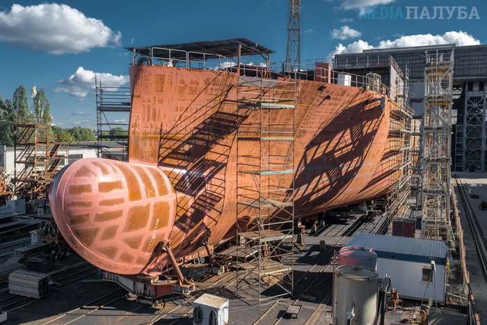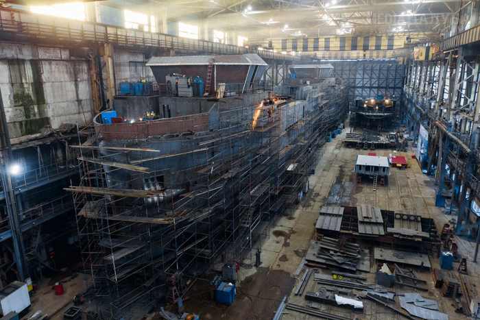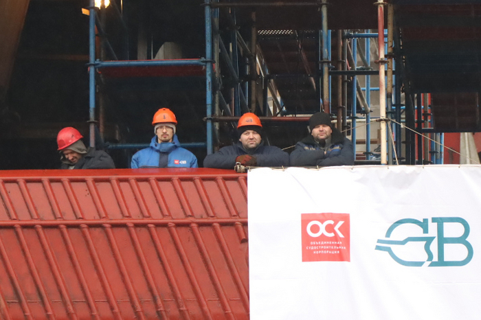 Примерная готовность головного судна составляет 39,7%, формируется корпус.