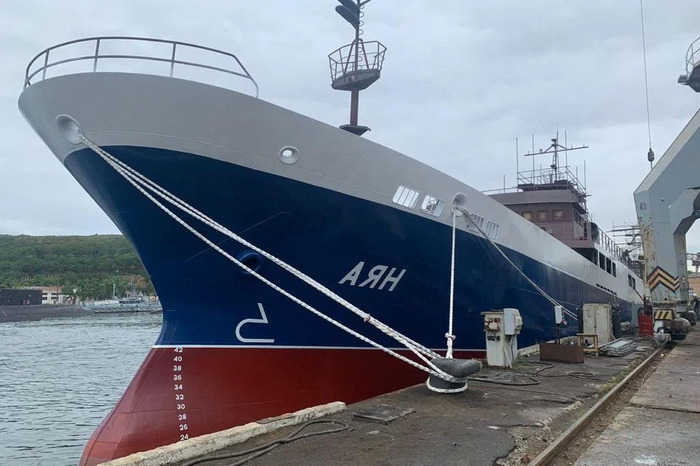 По планам верфь должна сдать один краболов в 2022 году и еще один — в 2023-го. Пятый краболов будет передан заказчику в 2024 году. Шестой пока только законтрактован. Головное судно по проекту 03141 «Охотск» заложили в ноябре 2019 года и в сентябре 2021-го передали заказчику. Второе судно, или первое серийное, проекта 03141 «Аян» спущено на воду 20 августа 2021 года.