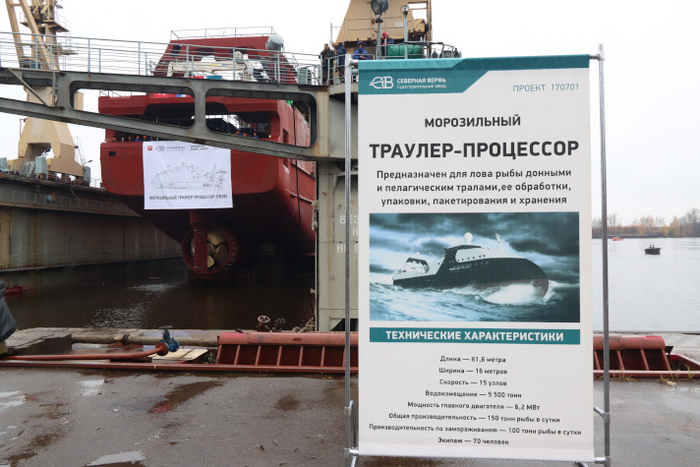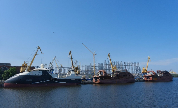 Сейчас для этого же заказчика завод строит большой морозильный траулер «Виктор Гаврилов» длиной 121 метр и водоизмещением в 14210 тонн — это крупнейшее из рыболовных судов, заказанных в рамках программы инвестквот.