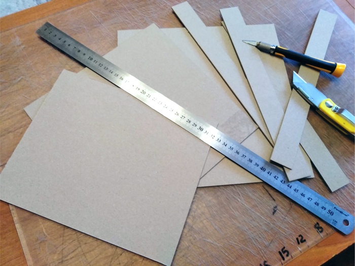 Теперь поработаем руками. Художественный или переплетный картон 2 и 3 мм. Нарезаются исходные плоскости (дно, боковые стороны), которые в последствии должны превратиться в рамку -"коробочку". Хорошая тренировка для мышц кисти и увеличения остроты зрения! ) Делаем.