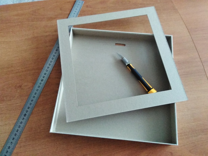 ... И вот "коробочка", она же будущая рамка, она же основа картины - склеена и даже дырочка для "повешения" продырявлена ))