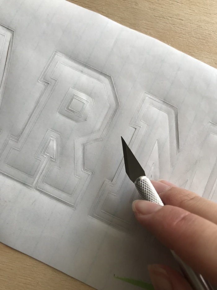 Очень аккуратно вырезаю трафарет, делаю это как плоттер.