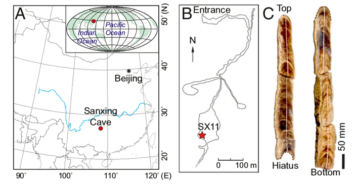 Чтобы лучше разобраться в этих процессах, международный коллектив ученых изучил (https://nplus1.ru/news/2018/08/21/polarity-oscillations) сталагмиты из пещеры Саньсин в южном Китае. Они образовались в период между 107 и 91 тысяч лет назад. Палеомагнитный анализ показал, что в то время магнитное поле Земле пережило большое количество аномалий. Амплитуда разворота магнитного поля в течение этого периода иногда превышала 100 градусов. При этом у этих вращений наблюдалась выраженная асимметрия — относительно нормального направления полярность в Восточном полушарии поворачивалась преимущественно на юг и на восток. Напряженность поля на отдельных участках поверхности снижалась на 90%.
