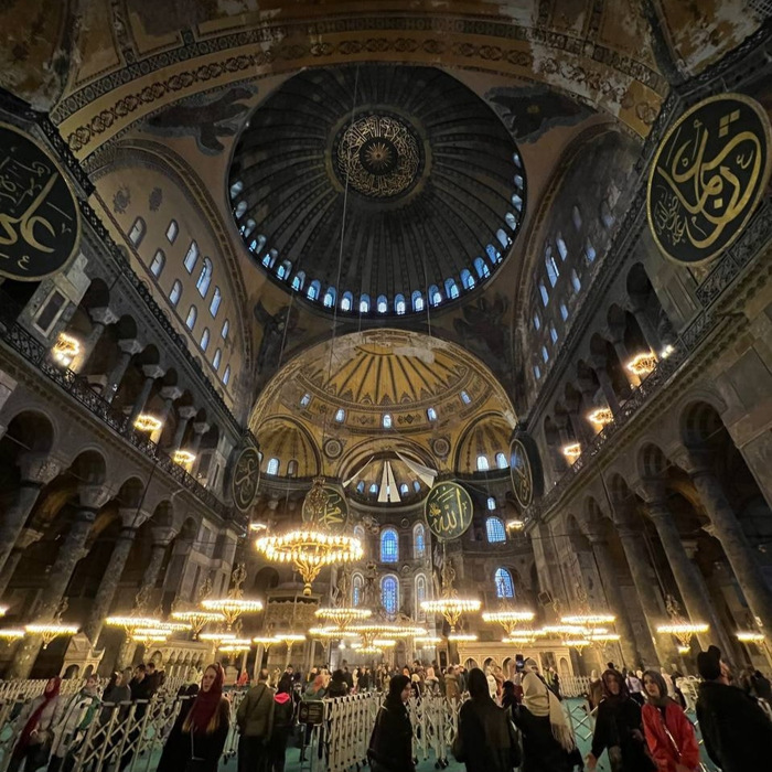 Далее пошли пешком в сторону Голубой Мечети, и Мечети София, которая ранее была православным храмом и построена в 537 году нашей эры. Ататюрк в начале 20 века сделал ее музеем, и в 2020 году из музея сделали мечеть София. Ее то мы и пошли исследовать, и зашли внутрь.
