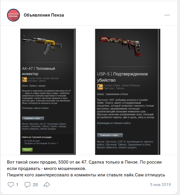 Играю я в кс иногда еще с версии 1.1 или 1.3 с 2000, когда еще в начальных классах был. Потом 1,6, CSS,CS GO. Не сильно я задрачивал, но каточек 5-7 за неделю мог сыграть. И мне однажды году этак в 17 выпадает из кейса автомат. ДОРОГУЩИЙ. Что-то около 4000 рублей. А это при том, что все мои скины стоили до 30 рублей. Ну норм думаю, круто. А в моменте он дорожает до 6 тысяч рублей. И мой мозг решил, что я его могу продать в местном сообществе городском за наличные. Не смог.