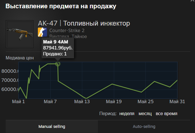 Хуев мне накидали знатно тогда за воротник, но я на это и рассчитывал, поэтому и разместил анонимно. Потом он периодически повышался в цене, сейчас захожу в инвентарь и смотрю цену.....