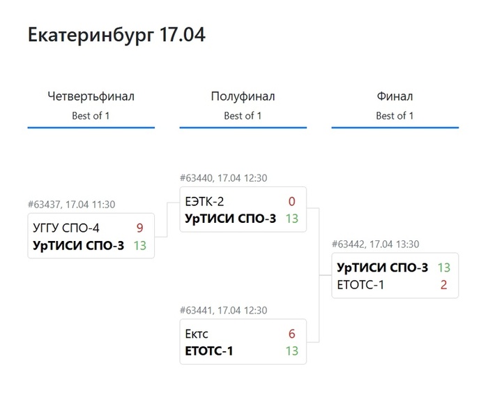 1. УрТИСИ СПО‑3 vs УГГУ СПО‑4 – захватывающая игра завершилась со счётом 13-9.