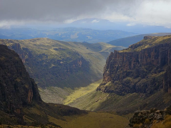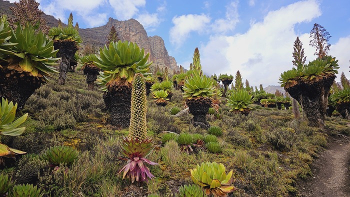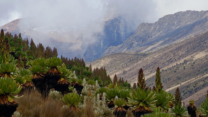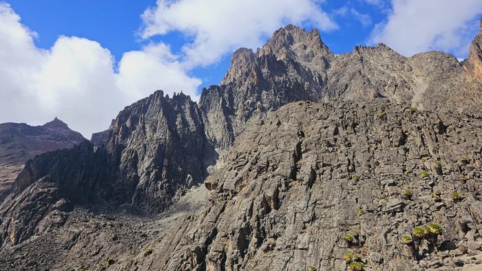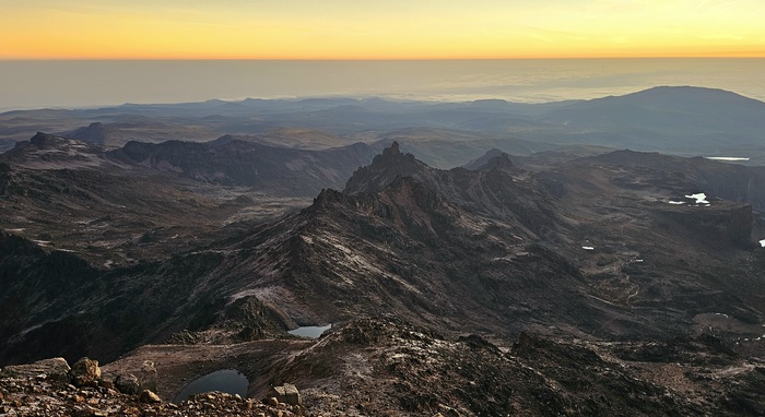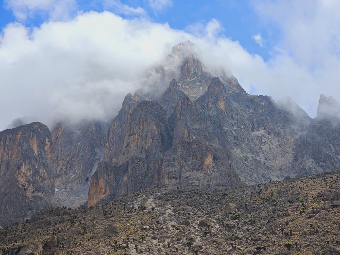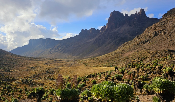 Но все таки есть исключения, и об одном из них я сейчас расскажу. Большинство слышало про Килиманджаро, на которую восходят тысячи туристов каждый год, но сегодня речь пойдет о менее известной, но не менее интересной горе - горе Кения, которая находится в стране с одноименным названием (что логично наверное). По сути эта гора является стратовулканом, который возник миллионы лет назад и все это время подвергался эрозии, таяниям ледников и тому подобному. Поэтому сейчас она и не выглядит как привычная гора, а скорее как огромный холм на несколько десятков километров в диаметре из которого в центре торчат несколько скал и хребтов, а вокруг них есть каньоны, скалы, речки и озера.