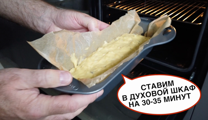 Выкладываем в форму пергамент, заливаем тесто. И ставим в духовой шкаф минут на 35.