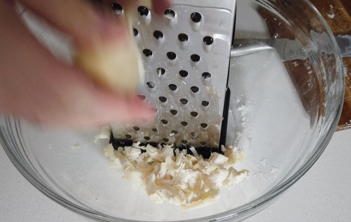 Режем-трём весь имеющийся сыр, колем и измельчаем (не слишком сильно, иначе они потеряются) орехи.