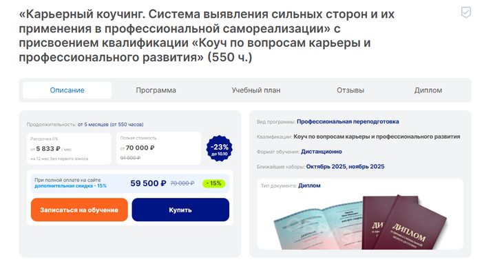 программа соответствует ФГОС, а диплом коуча открывает новые карьерные возможности;
