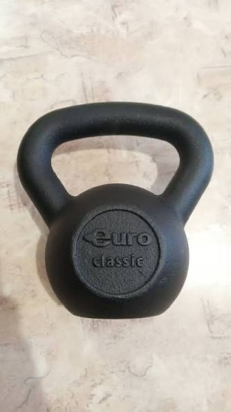 Мой первый вариант, это гири Euro classic. У них характерная буква € на тыльной стороне либо надпись Euro classic(а на лицевой указан вес). Относительно недорогой вариант, большой выбор весов, можно легко найти на маркетплейсах. Проверил сейчас, на 16 кг такая стоит около 5-5,5 тысяч.