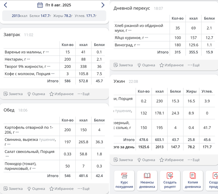 А ПОСЛЕ стало таким: 150 г белка, 160 г углеводов и 80 г жиров – итого ~2000 ккал.
