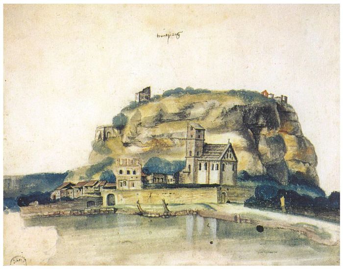Выйдя с вокзала сразу же перешли на другой берег реки Адидже, что бы взглянуть на церковь, которую изобразил Альбрехт Дюрер на своей акварели в 1495 году. Вот так он её увидел: