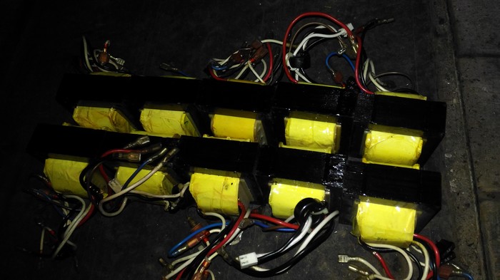 Я решил поступить проще. Если нельзя перекоммутировать обмотки, значит нам ничего не остается как только повысить напряжение до 380 В. Однофазное 220 В превратить в однофазное же 380 В. Сделать это можно с помощью повышающего трансформатора. Единственное, такой трансформатор на 3-4 кВт будет размером со сварочный, весить примерно так же и ко всему прочему еще и влетит в копеечку. Если вообще повезет такой найти. Сэкономить тут можно, включая трансформатор по автотрансформаторной схеме. В этом случае необходим трансформатор с обмотками на 220 и 160 В. На те же 2 кВт выходной мощности автотрансформатор уже должен будет иметь мощность всего 840 Вт, что уже более приемлемо. Я использовал трансформаторы от ИБП. Их сейчас можно купить весьма недорого, поскольку старые ИБП сейчас массово списываются, а сдавать такие трансформаторы на медь не очень то и выгодно, поскольку у них проваренный магнитопровод и они без болгарки не разбираются. Я очень удачно приобрел в свое время весьма недорого 10 шт таких трансформаторов. Они имеют на силовой обмотке напряжение порядка 15-16 В. Если эти обмотки соединить последовательно, можно получить 160 В. Если потом эти 160 В включить последовательно синфазно со входным напряжением, мы получим так необходимые нам 380 В.