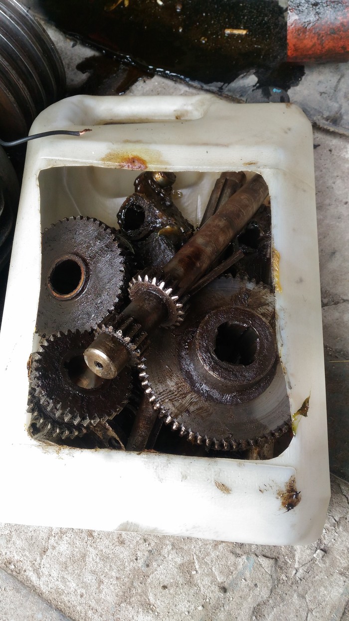 Разобрал коробку передач. Все валы, шестерни, направляющие и сам корпус надо будет отмыть от старой смазки солярой. Смазка в коробке какого-то непонятного грязно-ржавого цвета. Причем, смазка консистенцией похожа на старый солидол и еще немного жидкой фракции было на дне. Непонятно, это изначально так должно быть или просто от времени смазка так затвердела и расслоилась. Но в любом случае я туда буду заливать трансмиссионку GL5. Деталей из цветмета в коробке нет, так что должно работать нормально.