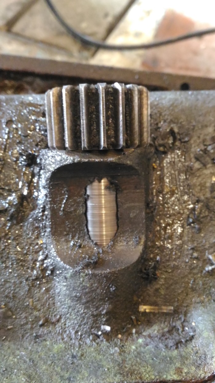 Шпоночные соединения все разбиты, шпонки надо менять на новые. Это основная причина огромных люфтов в зацеплении шестерен. Где достать шпонки пока не нашел. На рынке говорят, раньше их можно было купить в виде длинных прутков и отрезать по мере необходимости, но последние несколько лет они пропали из продажи. Какая попало сталь под шпонку не подойдет, нужна специальная, определенной твердости.