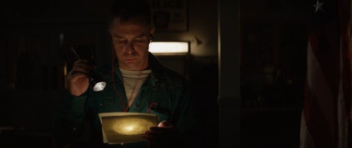 Жёстко? Но мне сложно сказать как-то иначе. Потому что сначала фильм представляет зрителю того самого, обвинённого безутешной, мятежной матерью в преступной халатности шерифа, а затем… Затем новый рассказчик выдаёт быстрое, короткое объяснение о тех самых делах, что остались нераскрытыми, подвешенными в воздухе вовсе не из-за продажности или халатности, после чего сходу, в лоб начинает бить на жалость. Была вина или не было, никто не смеет обвинять страдающего от неизлечимой болезни человека! В конце концов, сценарий и вовсе показывает Уиллоби, как чистейшей души человека, любящего мужа и нежного отца.