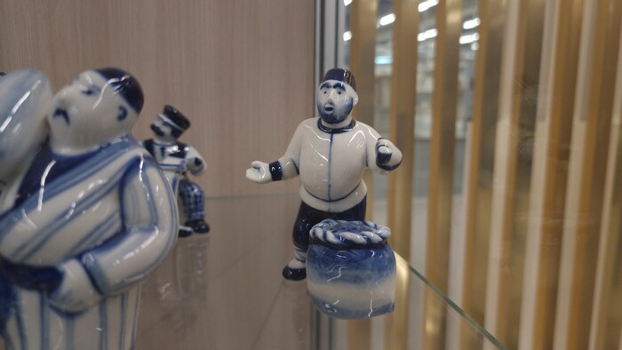 Насмотревшись и нагулявшись по МДЖД, организатор предлагает изменить план и поехать в Объединение Гжель ( 55.585944, 38.507205 ) на экскурсию. В Гжели я уже был и не слишком давно, но очень приятная экскурсовод располагает послушать лекцию снова, благо мы успели до закрытия. Если в прошлый раз я наравне с ребятами играл в экскурсионное “Что? Где? Когда?” то сейчас у меня другая роль. Я помню ответы на большинство каверзных вопросов, поэтому сдерживаюсь и молчу, пока Мототроеборье гадает.