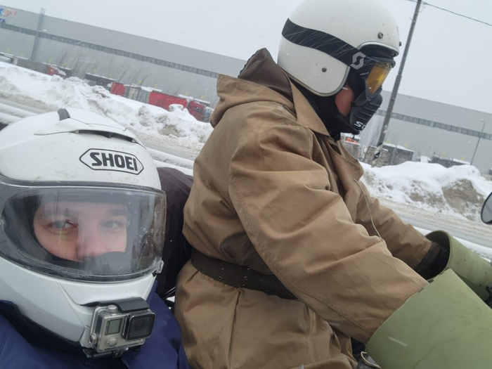 Пока мы застряли на ж/д переезде, делаю кадр прежде, чем ребята успевают опомниться и начать позировать. Через годы у меня собранно очень много фоток и напомню: не надо позировать. Фотки без позирования смотрятся естественней, чем одни и те же величественные позы. Это как фото случайного человека на мотоцикле можно определить всегда. Мотоцикл на боковой подножке, часто не заведён, но человек обязательно держится за руль обоими руками, как будто едет.