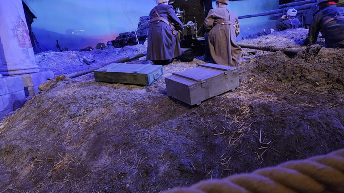 Осматриваем очередной мемориал (56.740281, 37.118729), пока наш ведущий оживлённо дискутирует с местным смотрителем о нюансах событий прошлых лет. Расставшись на позитивной ноте, двигаем к следующей точке.