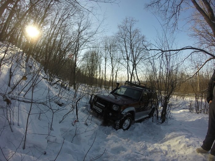 В итоге получилась интересное занятие, рано утром или после работы - прокатиться, помахать лапатой, хайджеком, полебедится и даже далеко ехать не надо. Еще узнать хорошо город, всякие места вокруг, в которых еще не бывал, весело покататься с семьей на машине и побегать на свежем воздухе. А в выходные это превращается в настоящую гонку, когда на точку приезжает сразу с десяток машин, особенно если они встречаются не у точки, а на подъезде к ней. Так я успешно повис на брюхе на замезшем отвале земли, пытаясь первым взять точку с того места, к которому нивы бы подъехать не смогли.