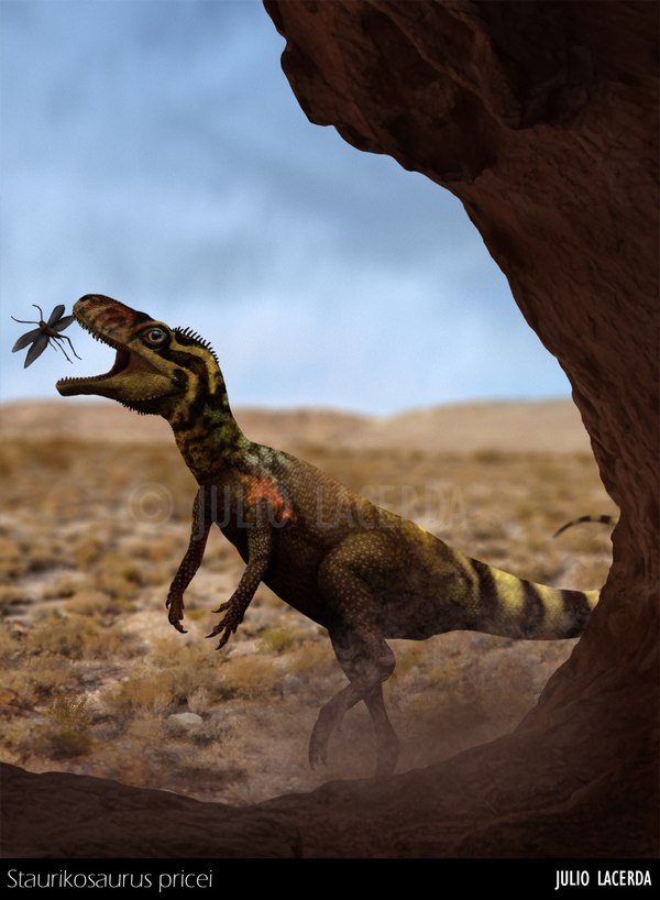 Ставрикозавр - ещё один динозавр карнийского яруса., родственник герреразавра. Двухметровый теропод весил до 30 кг. Жил ставрикозавр в Бразилии 225 млн лет назад.